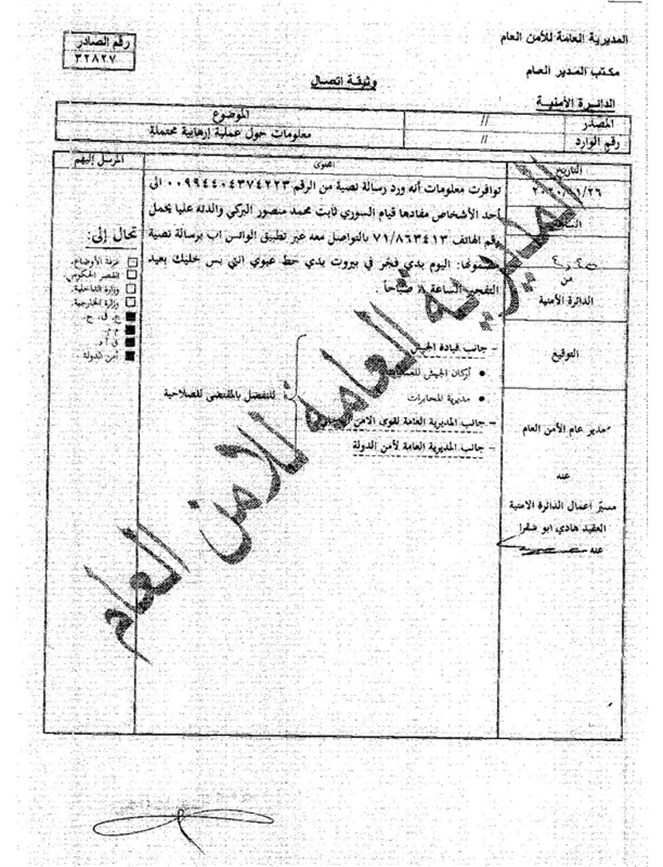 بالتفاصيل – وثيقة امنية .. “سوري يريد تنفيذ تفجير في بيروت”! (tayyar.org)