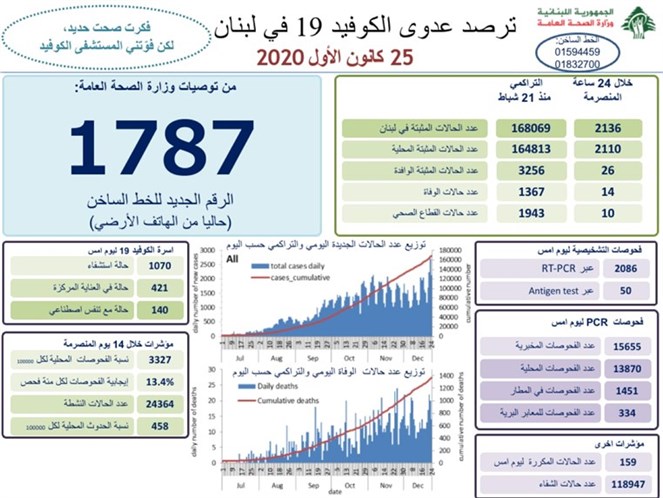 كورونا لبنان: كم بلغ عدد الاصابات والوفيات الجديدة اليوم؟