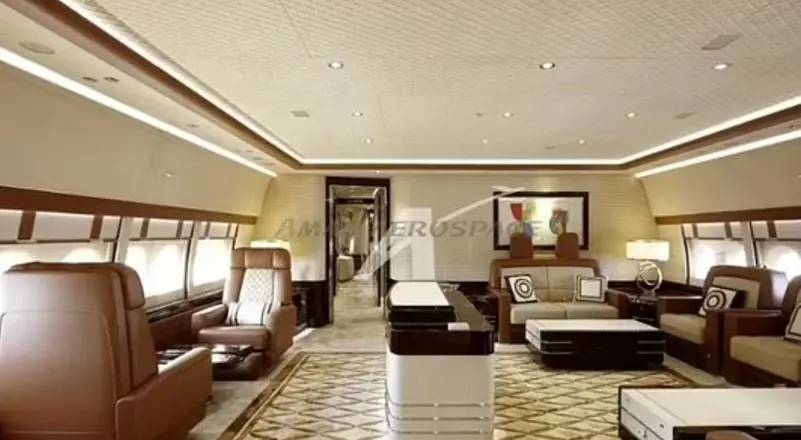 التعديلات تشمل أجنحة نوم ملكية، أرائك جلدية راقية، وسجاد فاخر، في مشهد أقرب إلى الفنادق الفخمة منه إلى الطائرات الرسمية. هذه الطائرة ستشكل حلاً مؤقتًا إلى حين تسلم الطراز الرئاسي المحدّث، المتوقع بحلول خريف العام المقبل.